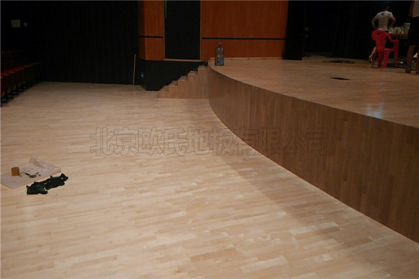 北京歐氏地板有限公司近期承接湖南婁底文化館運(yùn)動木地板和舞臺木地板鋪設(shè)工程,該項(xiàng)目負(fù)責(zé)人選擇的是雙龍骨楓木材質(zhì)運(yùn)動木地板,舞臺選擇的是板式龍骨結(jié)構(gòu)拼鋪楓木材質(zhì)舞臺木地板,鋪設(shè)面積共計(jì)926平米,現(xiàn)已鋪設(shè)完成結(jié)束驗(yàn)收.